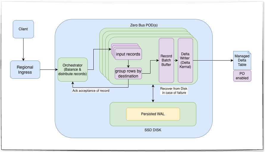 Zerobus Server - Think of them as scalable stateful pod on K8s attached with an SSD disk(high IOPS). Its responsibilities include: