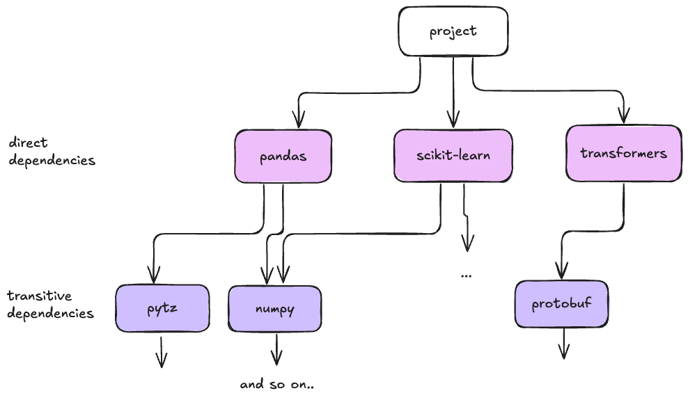 only infers the direct dependencies when you log a model. It identifies them by examining the flavor and the packages used in the model’s predict function. For more information, check out mlflow.models.infer_pip_requirements()