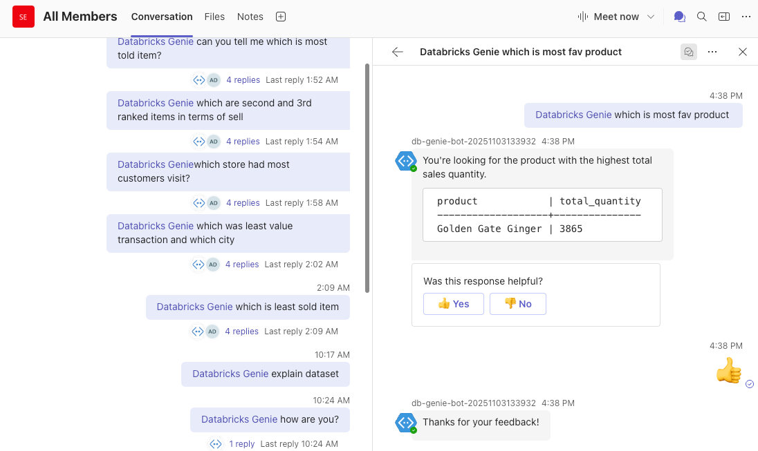 🔄 Real-time Feedback: Provide feedback to Genie directly from Teams