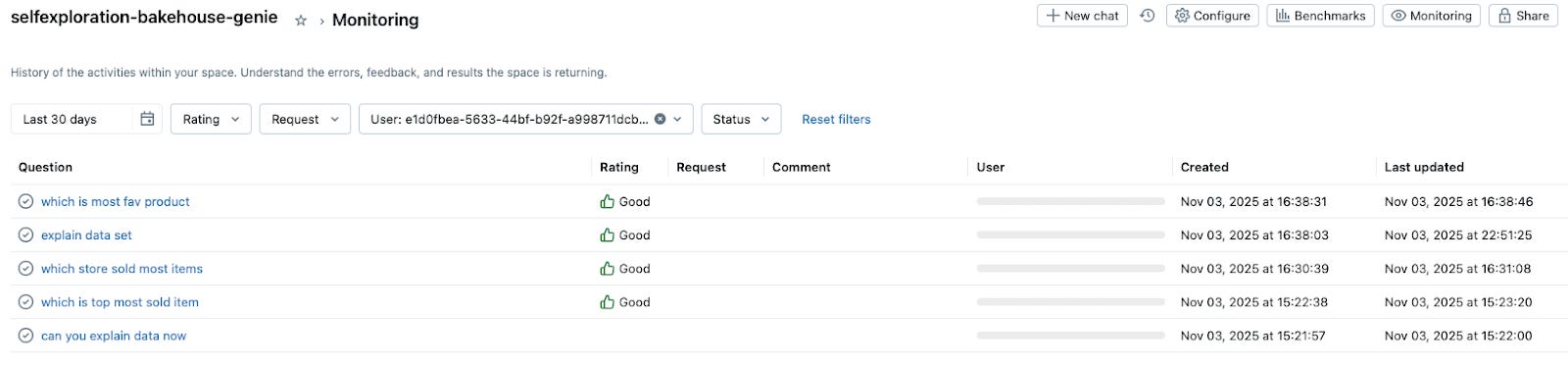 You should give feedback to Genie Bot, and it will get recorded in Databricks Genie, and the author of Genie Space will review it!