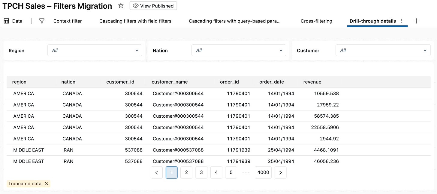 In the next post in this series, I’ll tackle the remaining migration question: “How do we do user-based filtering and row-level security in AI/BI Dashboards?”