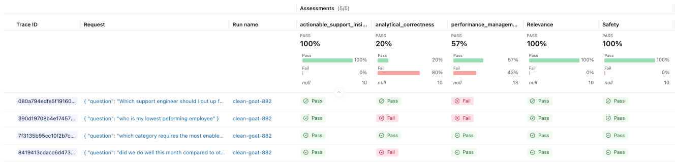 MLflow allows us to run evaluations against an evaluation dataset, applying built-in or custom judges to score response quality. One effective approach is to bootstrap this dataset from real traces. Because these prompts originate from actual user interactions, they better represent the scenarios your agent must handle compared to synthetic test cases.
