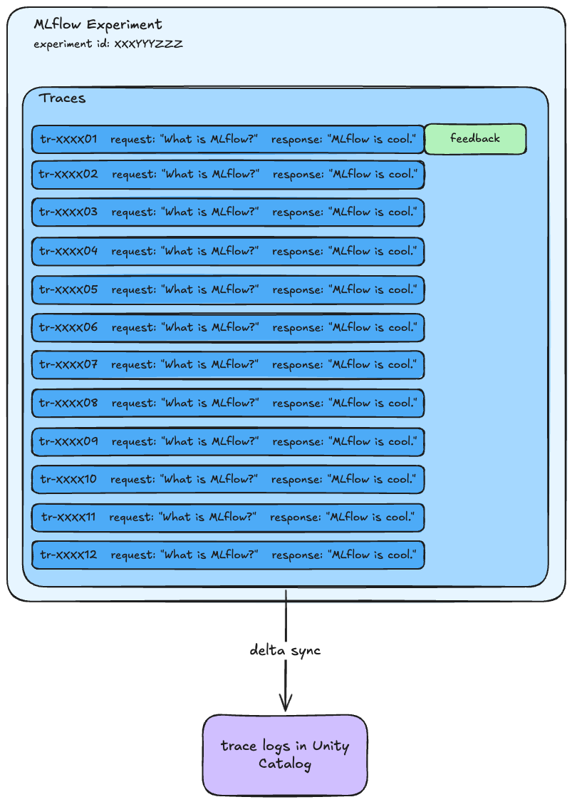 Each trace has a unique ID automatically generated by MLflow. This ID can be used to add feedback (source: Databricks documentation) via the MLflow log_feedback function. This can be an LLM judge or human feedback. Feedback is also stored as an assessment linked to the specific trace, making it queryable through MLflow.